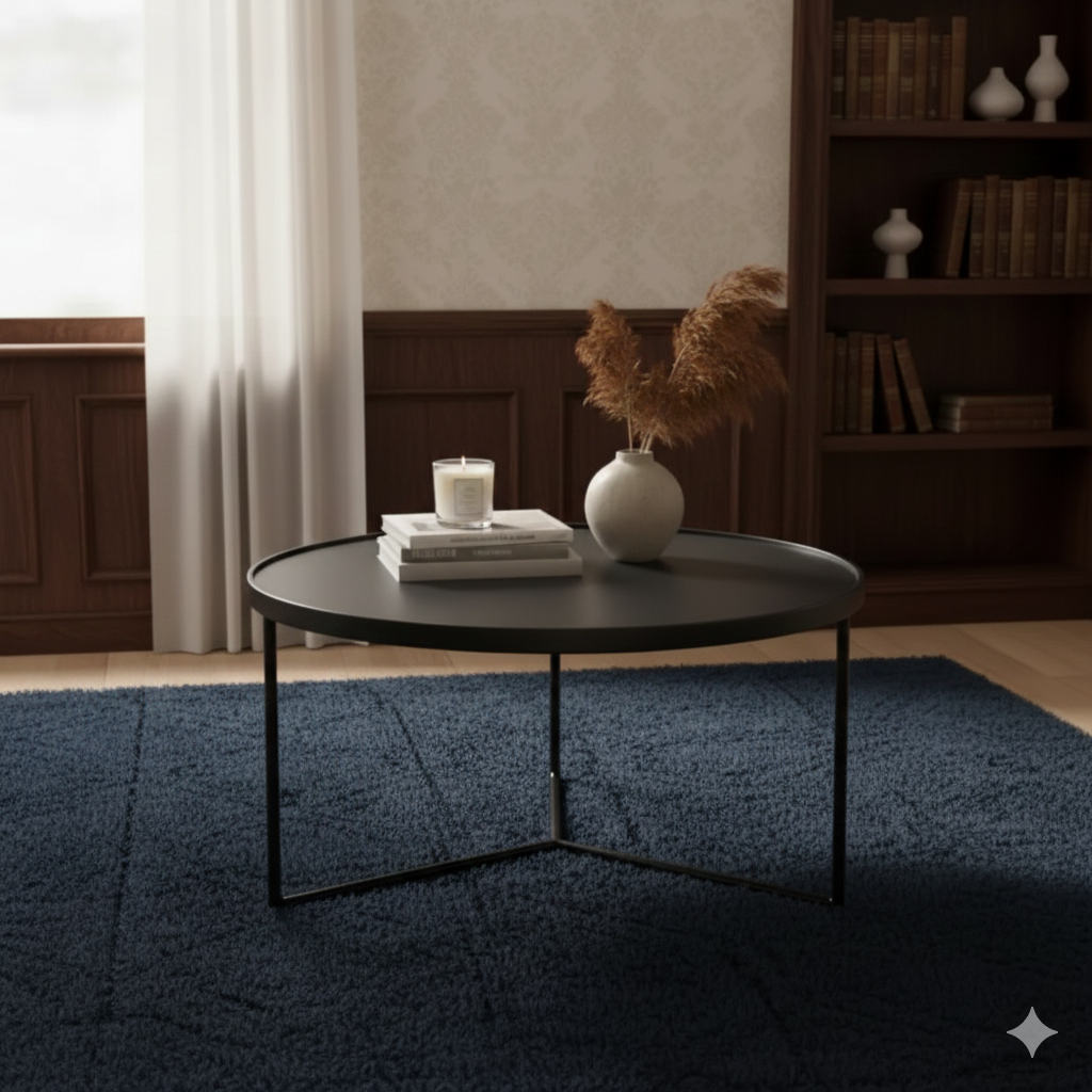 * **Styling Tips:** Create balance by pairing the black table with lighter elements like a white or beige sofa. Introduce metallic accents, layer textures, and add greenery to maximize its impact and turn this functional piece into an artistic focal point.